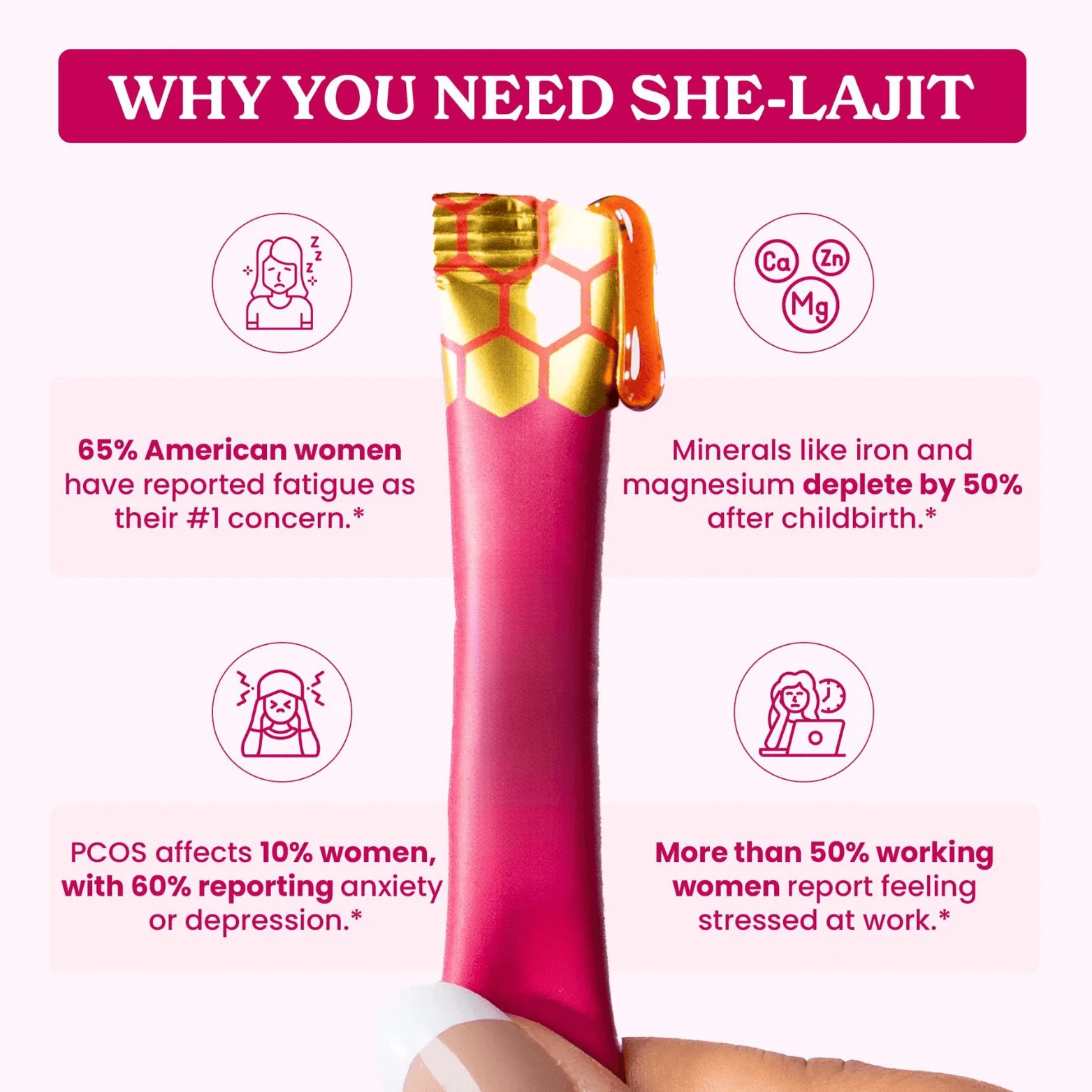 She-lajit supports hormonal balance, healthy ovulation, and overall mood and energy.